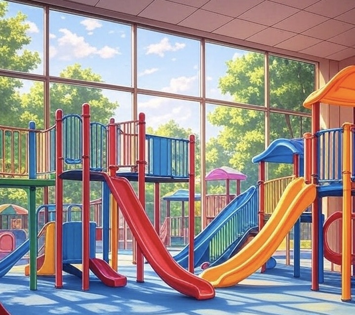 私、妻、上の子、下の子、義母で町の屋内多目的施設に遊びに行きました。