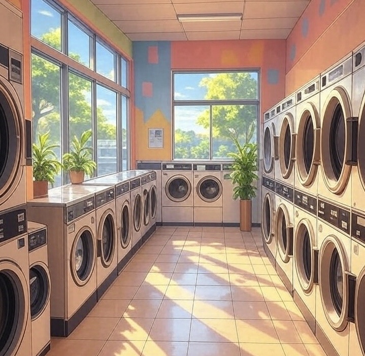 自宅のカーペットを久々に洗濯するためにコインランドリーに来ました。